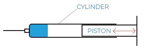 向后拉注射器的活塞會(huì)產(chǎn)生吸力,將液體拉入氣缸,同時(shí)向前推動(dòng)活塞將液體通過(guò)注射器的推頭排出(圖 1)。