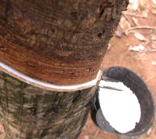 世界上約有2000種不同的植物可生產類似天然橡膠的聚合物,已從其中500種中得到了不同種類的橡膠,但真正有實用價值的是巴西三葉橡膠樹。橡膠樹的表面被割開時,樹皮內的乳管被割斷,膠乳從樹上流出。從橡膠樹上采集的乳膠,經過稀釋后加酸凝固、洗滌,然后壓片、干燥、打包,即制得市售的天然橡膠。天然橡膠根據不同的制膠方法可制成煙片、風干膠片、縐片、技術分級干膠和濃縮膠乳等。